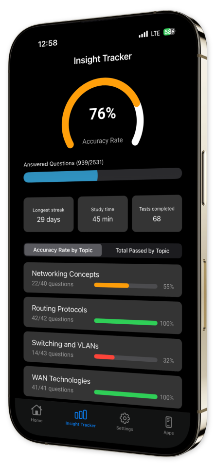 Progress Tracking: Monitor your advancement with intuitive tracking features, providing insights into your improvement over time, and motivating you toward your certification goal.